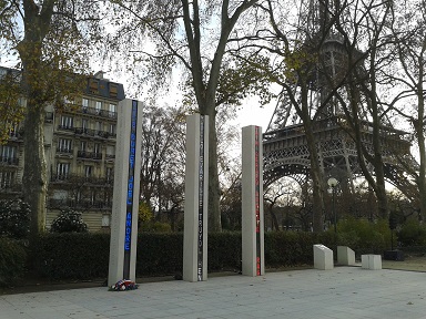 LA gerbe du gouvernement déposée au pied des colonnes du Quai Branly, représentant les souffrances de nos soldats et civils morts en Afrique du Nord.