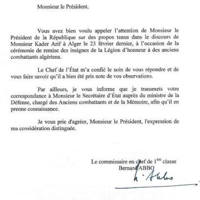 L’Algérie, terre française, n’existe plus depuis plus d’un demi-siècle. Comment l’Algérie algérienne pourrait-elle représenter ces vaillants soldats français, alors qu’à l’indépendance, comme vous ne pouvez l’ignorer, elle les a pourchassés et mis à mort par milliers, dans les conditions les plus infâmes de la barbarie.