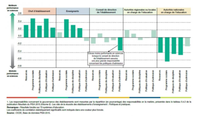 Et les rédacteurs du rapport PISA de poursuivre : « Les élèves affichent un score plus élevé en sciences dans les systèmes d’éducation où les chefs d’établissement disposent d’une plus grande autonomie en matière de ressources, de programmes scolaires et d’autres politiques scolaires ». C’est ce qu’a mis en évidence, par d’autres biais, l’étude de l’IREF sur les systèmes éducatifs.