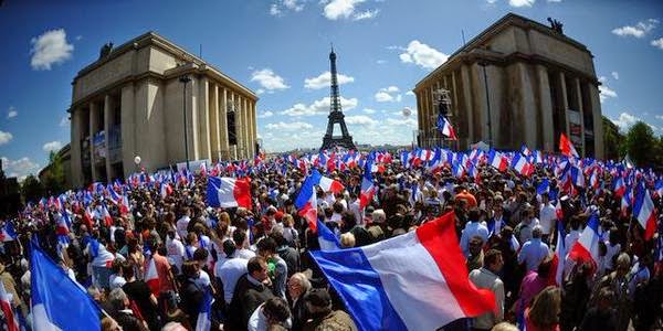 Hier c’était 1er mai. Comme chaque année, le FN a fait son défilé et honoré, à sa manière, Jeanne d’Arc. Bon okay, y a eu bousculades et pataquès, un peu comme chaque année si ce n’est que ce coup-ci les Femen ont mis le bronx en perturbant la cérémonie de décoration florale de la statue de Jeanne et le discours de La Marine. Le Vieux, tout vêtu de rouge, genre père Noël égaré, a fait trois petits tours puis il est parti et Gollnisch a choisi pour arme fatale un parapluie pour se " battre " contre quelques journaleux sans doute un brin provocateurs. Et à part ça ? Un discours enflammé de Marine, comme elle sait si bien les faire - reconnaissons lui ce mérite - un discours où elle aura repris les trucs habituels : immigration, Europe, islamisation, UMPS et tout et tout. Je n’ai pu en écouter que les extraits que les chaînes ont bien voulu diffuser plus tard ; visiblement, ce sont plus le happening des Femen et l’apparition du Vieux qui a retenu leur attention.