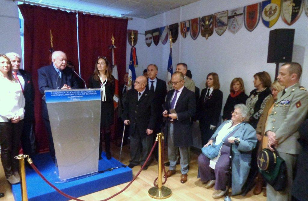 C’est en présence de Monsieur le Sénateur Maire Jean Claude Gaudin entouré de nombreux élus , personnalités , présidents d’associations et adhérents qu’à eu lieu Le Jeudi 17 Février 2016 l’inauguration de la Cité des Rapatriés et de la maison du combattant au 50 Bd de la Corderie 13007 Marseille