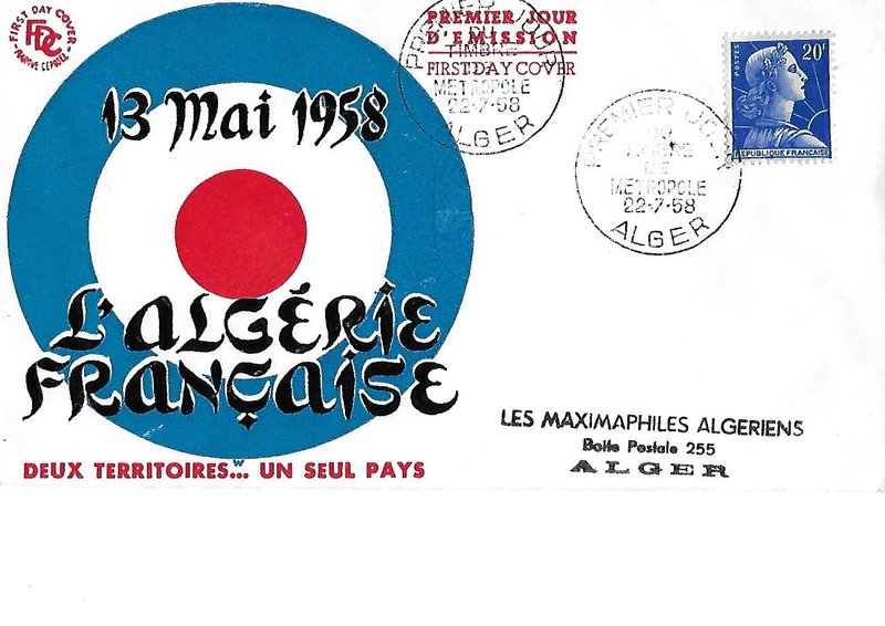 Ce document daté du 22-07-1958, acheté sur E.Bay, m’est parvenu d’ALGER !!!