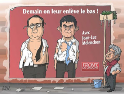" Voilà ce qu’il [Mélenchon] a diffusé sur son profil Facebook. Outre le fait que c’est complément con et le fait passer pour un abruti auprès des électeurs (mais amuse ses fans qui le prennent pour un génie), il s’agit directement d’un appel à la violence contre pépère et Manu. Ce n’est pas très fin.