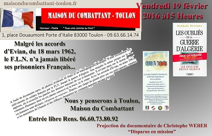 Projection du reportage "Disparus en mission" de Christophe Weber à Toulon