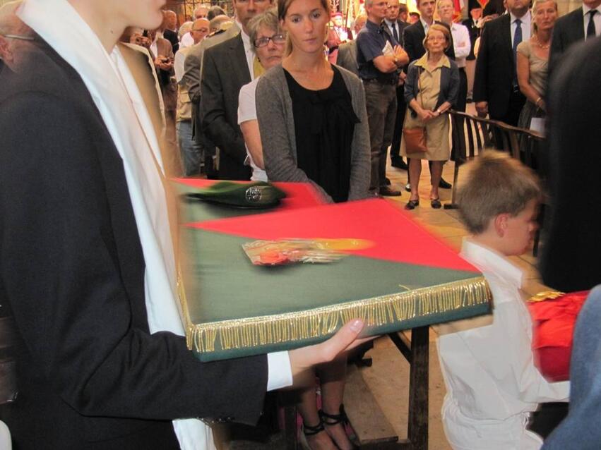 A l’entrée, ce sont trois des petits-fils d’Hélie et de Manette qui ont porté les décorations et le Béret de leur grand-père.