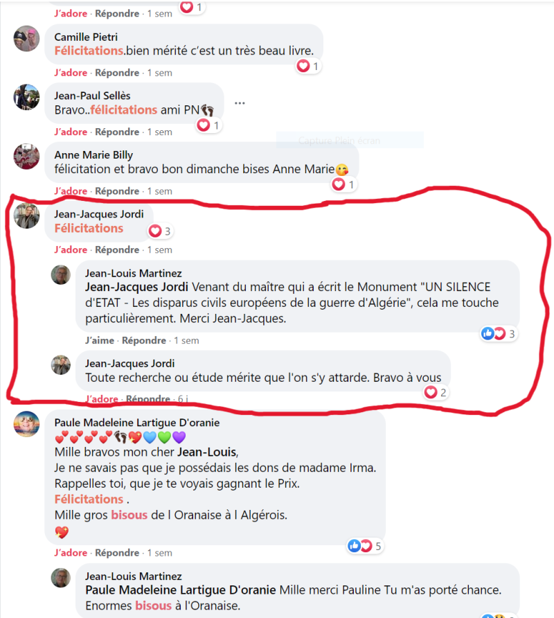 Je rappelle que mon livre « ALGERIE 1962-DISPARUS ET OUBLIES » à la vente au prix de 17 £ (+ frais d’envoi) a obtenu le Prix Littéraire Algérianiste 2021- Distinction Témoignage.