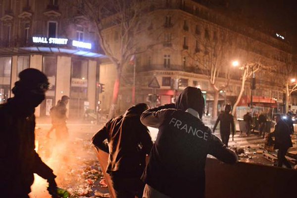 Alors ceci étant : L’étudiant attardé qui est à la tête de l’Unef a mollement condamné ces débordements même si, dit-il, la stratégie policière n’est sans doute pas pour rien dans ces incidents de parcours. Okay . Quant à lui, le Sinistre de l’Intérieur, il était colère et a regretté que certains, les fauteurs de troubles, ne soient pas en amour avec la République. Il a même demandé à la justice de punir sévèrement les casseurs. Okay.