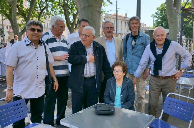 Louis Pellegrini - Gérard Faroudja - Jean-Louis Merckel - Daniel Tardieu - Charles Bomy avec leurs épouses bien entendu ainsi que Gérard Vackier très heureux de ce moment passé ensemble à Béziers ce 09 mai.